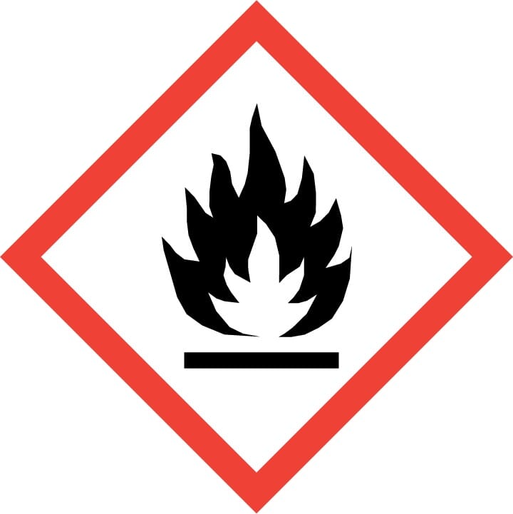 H222-H229 Ekstremt brannfarlig aerosol. Beholder under trykk:Kan eksplodere ved oppvarming.